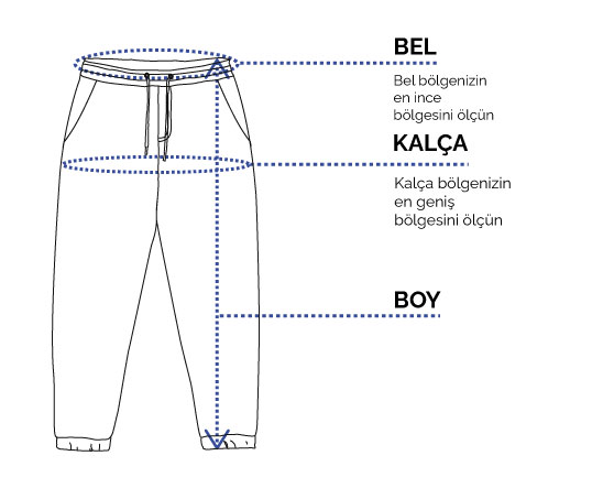 -Kalça ve bel ölçüleriniz iki farklı bedene uyuyorsa, kalça ölçünüzün uyduğu bedeni sipariş ediniz.